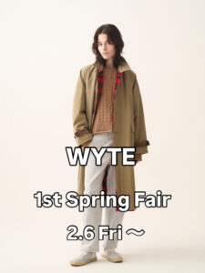 ※フェアに伴いWYTE春物商品¥30,000以上お買い上げのお客様、先着30名様に非売品WYTEオリジナルTシャツをプレゼント🎁