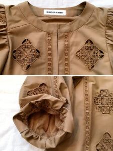 《ドロンワーク風刺繍ボリュームスリーブブラウス》